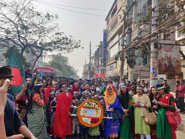 সোমবার সকালে শহররে চাষাঢ়া বিজস্তম্ভে এই ফুলেল শ্রদ্ধা জানান তারা।