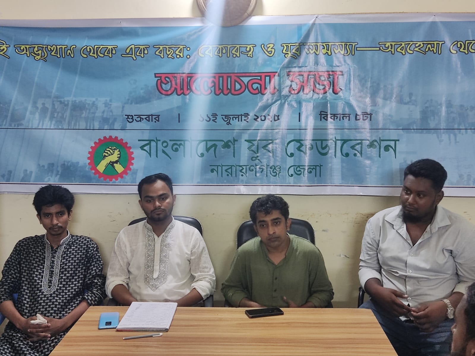 শুক্রবার বাংলাদেশ যুব ফেডারেশন নারায়ণগঞ্জ জেলা শাখার উদ্যোগে “জুলাই অভ্যুত্থান থেকে ১ বছর: বেকারত্ব ও যুব সমস্যা–অবহেলা থেকে উত্তরণ” শীর্ষক এক আলোচনা সভা জেলা কার্যালয়ে অনুষ্ঠিত হয়।