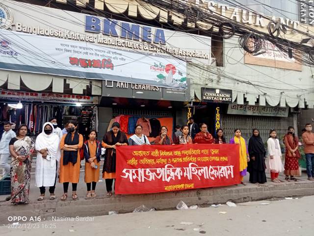 নেতৃবৃন্দ আরো বলেন, বাহ্যিকভাবে দেখলে দেখা যাবে দেশে নারী প্রধানমন্ত্রীসহ অনেক বড় বড় দায়িত্ব পালন করছে। কিন্তু সমাজ মননে আরো অনেক বেশি অবক্ষয় ঘটে চলছে। সারাদেশে নারী শিশু ধর্ষণ- নির্যাতন হত্যা এক ভয়াবহ রুপ নিয়েছে। ঘরে বাহিরে সবর্ত্র যেকোন স্থানে দিনে রাতে যেকোন সময়ে নির্যাতনের শিকার হতে হয়। বেশিভাগ ঘটনার ক্ষেত্রেই দ্রæত এবং উল্লেখযোগ্য বিচারের নজির দেখা যায় না। আবার পারিবারিক জীবনের প্রত্যেকটি ক্ষেত্রেই নারী বৈষম্যের শিকার। সমাজে সম্পত্তির উত্তরাধিকার ক্ষেত্রেও নারীর প্রতি বৈষম্য বিরাজমান। গৃহস্থালি কাজ ছাড়া পরিবার চলেনা কিন্তু গৃহ¯া’লি কাজের স্বীকৃতি পরিবার, সমাজ ও রাষ্ট্রে নাই। সমকাজে সমমজুরী আইনে থাকলেও বাস্তবে সমস্ত অপ্রাতিষ্ঠানিক ঘাতে নারী পুরুষের তুলনায় কম মজুরী পেয়ে থাকে। নারীর সস্তা শ্রমকে ব্যবহার করতে মালিক শ্রেনী যতো আগ্রহী, তাদের কাছে ততোটাই উপেক্ষিত নারীর অধিকার।