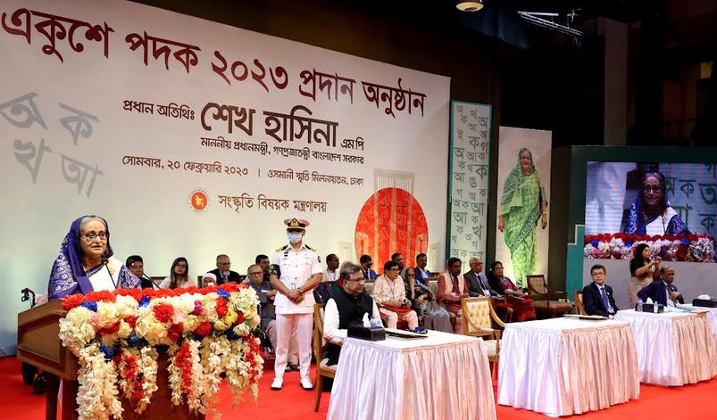 সরকার প্রধান আজ সকালে রাজধানীর ওসমানী স্মৃতি মিলনায়তনে ‘একুশে পদক-২০২৩’ প্রদান অনুষ্ঠানে প্রধান অতিথির ভাষণে এ কথা বলেন। অনুষ্ঠানে বিভিন্ন ক্ষেত্রে অবদানের স্বীকৃতিস্বরূপ ১৯ জন বিশিষ্ট ব্যক্তিত্ব ও দ’ুটি প্রতিষ্ঠানের মাঝে পদক বিতরণ করেন প্রধানমন্ত্রী।