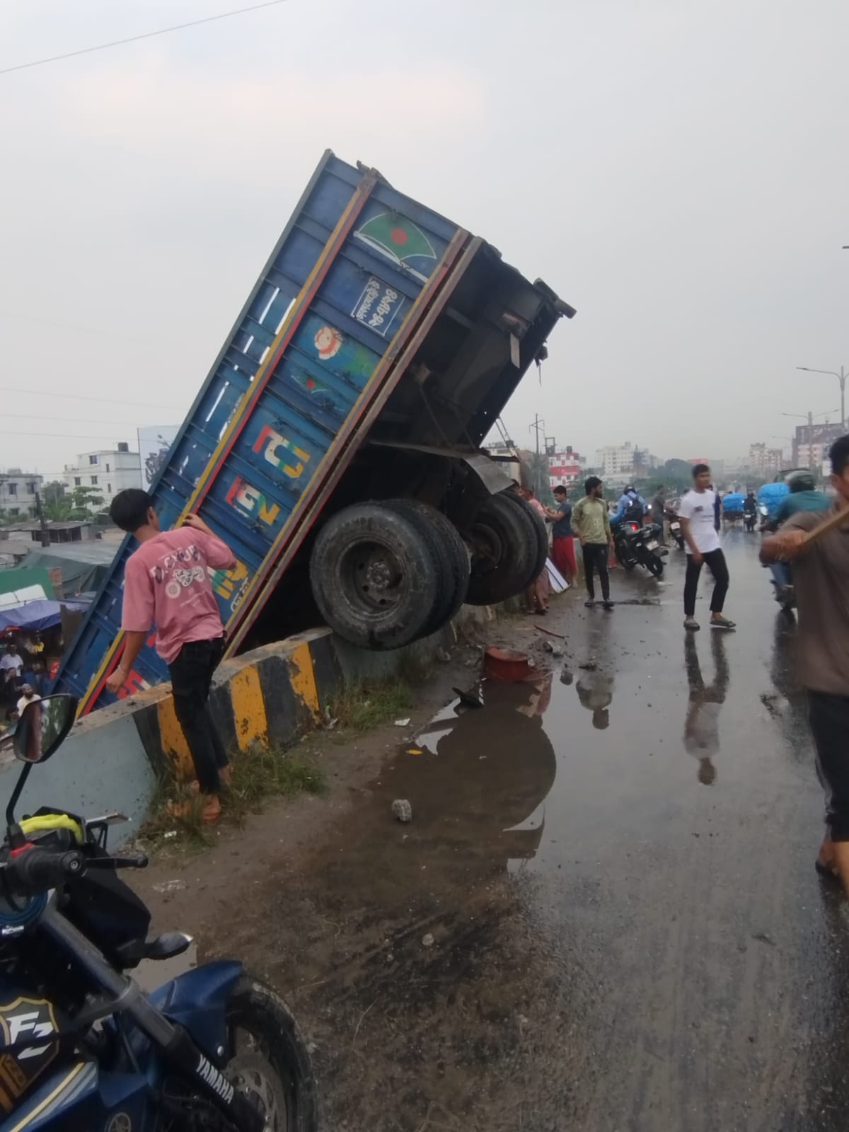 ঢাকা-নারায়ণগঞ্জ লিংক রোডের ভূঁইঘর এলাকায় দ্রুতগামী একটি ট্রাক নিয়ন্ত্রণ হারিয়ে ফ্লাইওভারের রেলিং ভেঙে ঝুলে পড়ে। সোমবার (২৯ সেপ্টেম্বর) দুপুর ২টার দিকে এ ঘটনা ঘটে।