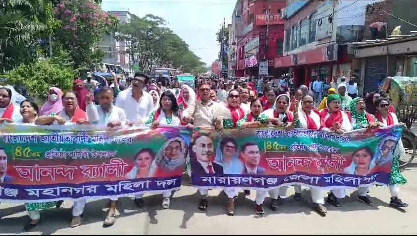 বাংলাদেশ জাতীয়তাবাদী মহিলা দলের ৪৫তম প্রতিষ্ঠা বার্ষিকী উপলক্ষে নারায়ণগঞ্জ জেলা ও মহানগর মহিলা দলের উদ্যোগে কেক কাটা, শহরে বন্যাঢ্য র্যালী বের করা হয়।