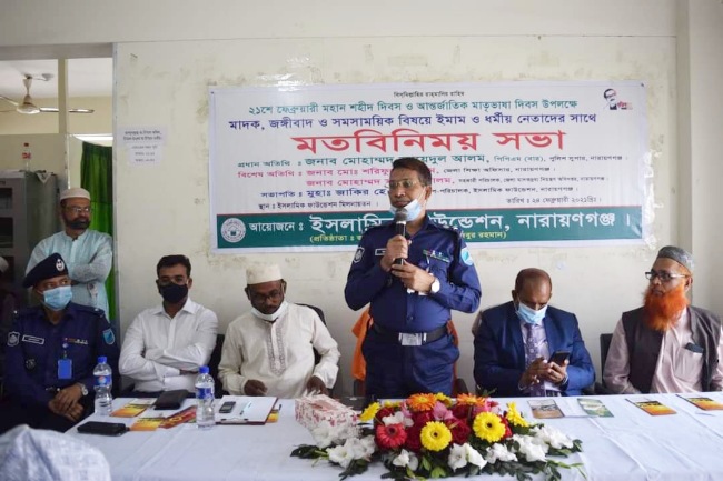 বুধবার ( ২৪ ফেব্রুয়ারি) দুপুরে নারায়ণগঞ্জ জেলা ইসলামিক ফাউন্ডেশন কর্তৃক আয়োজিত অনুষ্ঠানে প্রধান অতিথি হিসেবে উপস্থিত ছিলেন নারায়ণগঞ্জ জেলা পুলিশ সুপার মোহাম্মদ জায়েদুল আলম। জেলা ইসলামিক ফাউন্ডেশন উপ-পরিচালক মুহাঃ জাকির হোসাইন’র সভাপতিত্বে বিশেষ অতিথি হিসেবে উপস্থিত ছিলেন মোঃ শরিফুল ইসলাম, জেলা শিক্ষা অফিসার, মোহাম্মদ সামছুল আলম, সহকারি পরিচালক, মাদক দ্রব্য নিয়ন্ত্রণ অধিদপ্তর, নারায়ণগঞ্জ। এছাড়াও ফতুল্লা মডেল থানার অফিসার ইনচার্জ আসলাম হোসেন উপস্থিত ছিলেন। ইসলামিক ফাউন্ডেশন মিলনায়তনে অনুষ্ঠিত এ অনুষ্ঠানে স্থানীয় ঈমাম ও ধর্মীয় নেতাগণ উপস্থিত ছিলেন।