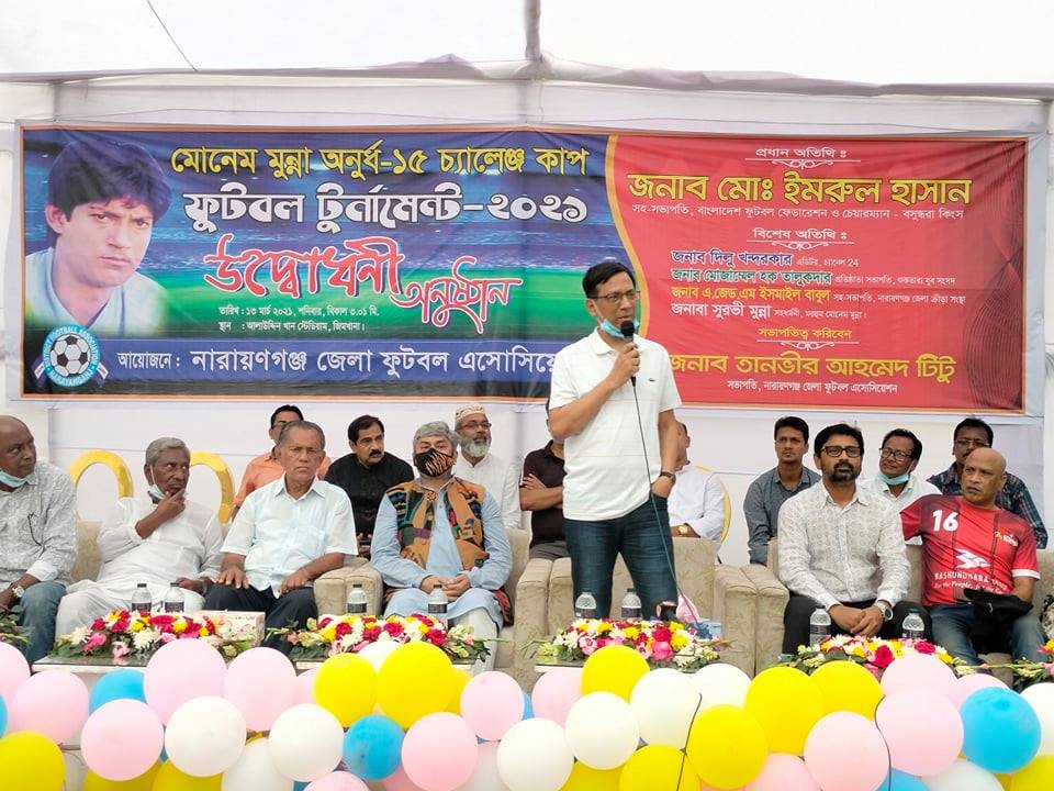 উদ্বোধনী অনুষ্ঠানে প্রধান অতিথির বক্তব্যে তিনি বলেন,আজকে শুধুমাত্র একটি নামের জন্যে এখানে আসা। আর সে নামটি হলো মোনেম মুন্না। এই নামটির সাথে আমার অনেক আবেগ এবং স্মৃতি জড়িয়ে আছে। তোমার যারা এখানে মোনেম মুন্না’র টিশার্ট পরে আছো তা শুধু টিশার্টে রাখলে হবে না, মোনেম মুন্নাকে বুকে ধারণ করতে হবে। কারণ মোনেম মুন্না এমন একটি নাম যাকে ছাড়া বাংলাদেশের ফুটবল ইতিহাস লেখা যাবে না। আমি যদি রাষ্ট্রীয় ক্ষমতার আশেপাশে থাকতাম তাহলে ফুটবলের জন্যে মোনেম মুন্নাকে স্যার উপাধিতে ভূষিত করতাম। কিন্তু দুর্ভাগ্য আমাদের মোনেম মুন্না জীবিত থাকা অবস্থায় তাকে যথার্থ সম্মান দিতে পারি নাই কিন্তু তোমরা যারা আমাদের উত্তরাধিকার আছো তোমরা তাকে যথার্থ সম্মানটুকু দিবে।
