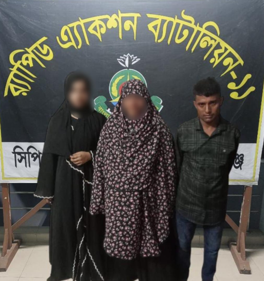 গ্রেফতারকৃতরা হলেন,নারায়ণগঞ্জের রুপগঞ্জের বরুনা পূর্বেরটেক গ্রামের মৃত ইয়ানুছের ছেলে তাইজুল (৪০), তা র স্ত্রী রাহিমা (৩৫), স্বামী-তাইজুল এবং তার মেয়ে তাইরিন (১৯)।