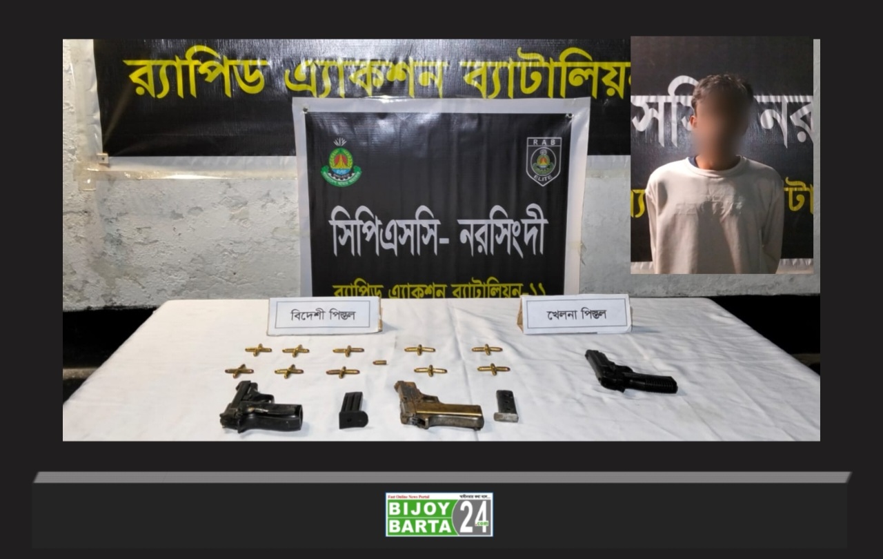 ওসমান হাদির ওপর হামলায় ব্যবহৃত অস্ত্র উদ্ধারসহ একজনকে গ্রেফতার করেছে র্যাব-১১। অভিযানে ২টি বিদেশি পিস্তল, ৪১ রাউন্ড পিস্তলের গুলি, ২টি ম্যাগাজিন ও একটি খেলনা পিস্তল উদ্ধার করা হয়েছে।