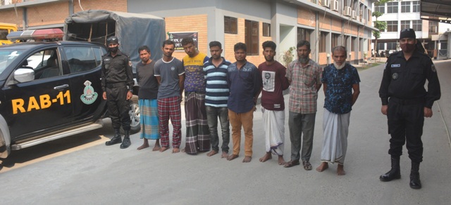 গ্রেফতারকৃতরা হলো ১। মোঃ জয়নাল আবেদীন (৪০), ২। মোঃ মাসুম বিল্লাহ (২৭), ৩। মোঃ রিয়াজ (২৮), ৪। মোঃ আহাম আলী (৪৫), ৫। মোঃ জমির আলী (৬৫), ৬। মোঃ মোশারফ হোসেন (৪০), ৭। মোঃ দিদারুল আলম (২৮), ৮। মোঃ রাশেদ (২৬)। এসময় তাদের কাছ থেকে কোটি টাকার রপ্তানিজাত চোরাই পোশাকসহ ০১টি কাভার্ডভ্যান উদ্ধার করা হয়।
