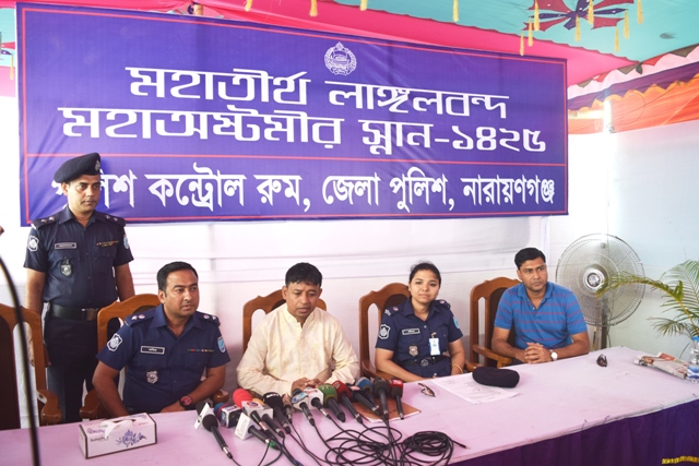 নারায়ণগঞ্জের বন্দরের লাঙ্গলবন্দে ব্রহ্মপুত্র নদে শুরু হয়েছে হিন্দু ধর্মাবলম্বীদের দুইদিন ব্যাপী মহাঅষ্টমী পুণ্য স্নান উৎসব। দেশের বিভিন্ন এলাকা থেকে পুণ্যার্থীদের ঢল নেমেছে ব্রহ্মপুত্র নদে। শান্তিপূর্নভাবে স্নানোৎসব সম্পন্ন করতে জেলা প্রশাসনের পক্ষ থেকে নেয়া হয়েছে বিশেষ নিরাপত্তা ব্যবস্থা। পূণ্যার্থীরাও জানিয়েছেন এবার নির্বিঘ্নে বিভিন্ন ঘাটে তারা পূর্ণ্য¯স্নান করছেন।
