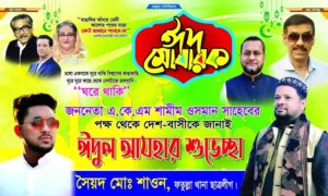ফতুল্লা থানা ছাত্রলীগের সভাপতি হাজী আবু মোহাম্মদ শরীফুল হক শরীফের পক্ষ থেকে নারায়ণগঞ্জবাসীকে পবিত্র ঈদুল আযহার শুভেচ্ছা জানিয়েছেন ফতুল্লা থান ছাত্রলীগ নেতা সৈয়দ মো. শাওন।