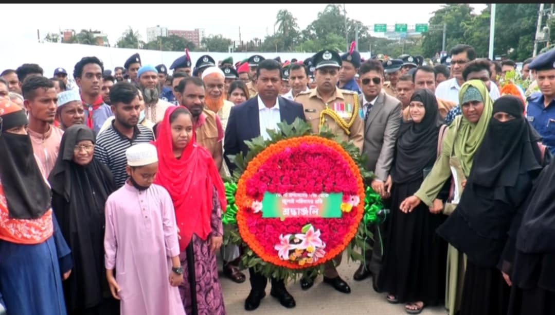 জুলাই গণঅভ্যুত্থানের প্রথম বার্ষিকী উপলক্ষে নারায়ণগঞ্জে দেশের প্রথম জুলাই শহিদ স্মৃতিস্তম্ভে পুষ্পস্তবক অর্পণ করেছেন জেলা প্রশাসক, জেলা পুলিশ, র্যাব, ফায়ারসার্ভিসসহ বিভিন্ন দপ্তরের কর্মকর্তা, বিভিন্ন রাজনৈতিক দল ও শহীদ পরিবারের সদস্যরা। মঙ্গলবার সকালে নারায়ণগঞ্জ সদরের হাজিগঞ্জ এলাকায় স্থাপিত দেশের প্রথম জুলাই স্মৃতিস্তম্ভে ফুল দিয়ে৷ শ্রদ্ধা জানাম জেলা প্রশাসক জাহিদুল ইসলাম মিঞা এবং পুলিশ সুপার প্রত্যুষ কুমার মজুমদার। এর পরে একে একে সরকারি বিভিন্ন দপ্তরের কর্মকর্তারা স্মৃতিস্তম্ভে শ্রদ্ধা নিবেদন করেন করেন। পরে জেলা বিএনপি,মহানগর বিএনপি, জাতিয় নাগরিক পার্টি এবং জুলাই শহীদ পরিবারের সদস্যরা ফুল দিয়ে শ্রদ্ধা নিবেদন করেন। এসময় শহীদের রুহের মাগফেরাত কামনা করে দোয়া করা হয়।