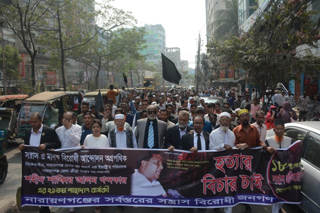 শহীদ সাব্বির আলম খন্দকারের ২১ তম শাহাদাৎ বার্ষিকী উপলক্ষে খুনিদের গ্রেফতার ও বিচার এবং নারায়ণগঞ্জকে সন্ত্রাস ও মাদক মুক্ত করার দাবীতে আজ রবিবার ১৮ই ফ্রেবুয়ারী ১০ টায় শহীদ সাব্বির আলম খন্দকার ফাউন্ডেশনের পক্ষ থেকে আয়োজিত উক্ত শোক র্যালীতে দল-মত, জাতি-র্ধম নির্বিশেষে কয়েক হাজার নারায়ণগঞ্জবাসী যোগ দেয়। শোক র্যালী নিয়ে মাসদাইর সিটি কবরাস্থানে গিয়ে শহীদের কবর জেয়ারত, দোয়া মাহফিল অনুষ্ঠিত হয়।