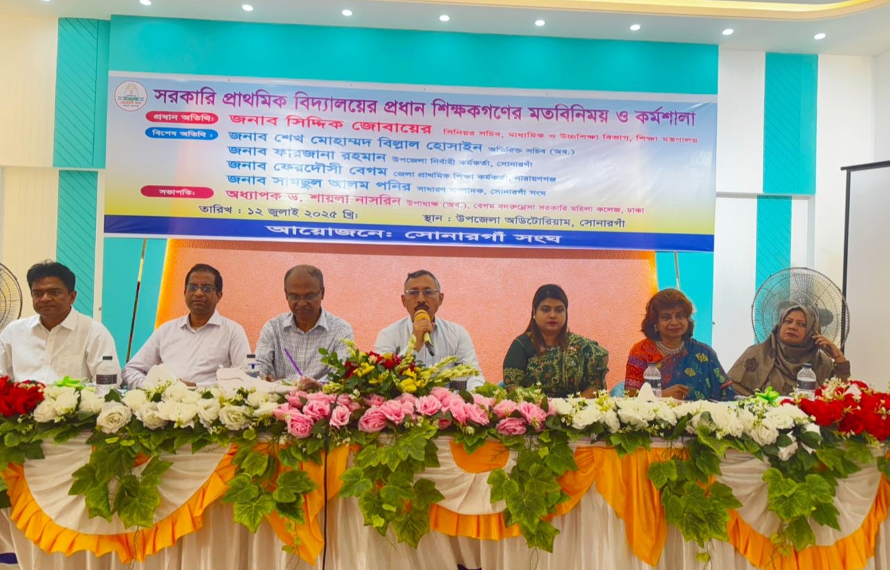 শনিবার (১২জুলাই) দুপুরে নারায়ণগঞ্জের সোনারগাঁ উপজেলা পরিষদ অডিটোরিয়ামে আয়োজিত সরকারি প্রাথমিক বিদ্যালয়ের প্রধান শিক্ষকদের মতবিনিময় সভা ও দিনব্যাপী কর্মশালায় প্রধান অতিথির বক্তব্যে তিনি এসব কথা বলেন।