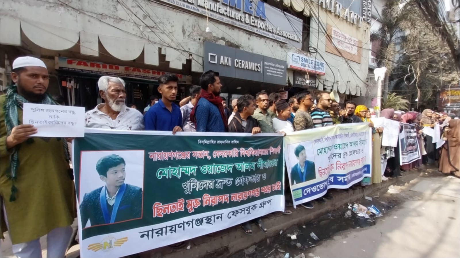 মানববন্ধন ও প্রতিবাদ সভায় উপস্থিত ছিলেন বিভিন্ন সামাজিক সংগঠনের নেতৃবৃন্দ সহ নারায়ণগঞ্জবাসী।
