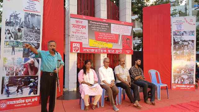 সমাজতান্ত্রিক ছাত্র ফ্রন্ট নারায়ণগঞ্জ জেলার আহŸায়ক ছাত্রনেতা সাইফুল ইসলামের সভাপতিত্বে বক্তব্য রাখেন বাংলাদেশের সমাজতান্ত্রিক দল- বাসদ নারায়ণগঞ্জ জেলার আহŸায়ক কমরেড নিখিল দাস, সদস্য সচিব আবু নাঈম খান বিপ্লব, নারায়ণগঞ্জ সাংস্কৃতিক জোটের সাধারণ সম্পাদক ধীমান সাহা জুয়েল, সমাজতান্ত্রিক ছাত্র ফ্রন্ট কেন্দ্রীয় কমিটির সভাপতি ছাত্রনেতা মুক্তা বাড়ৈ, অর্থ সম্পাদক সুলতানা আক্তার, সমাজতান্ত্রিক ছাত্র ফ্রন্ট নারায়ণগঞ্জ জেলার সাধারণ সম্পাদক নাছিমা সরদার, সমাজতান্ত্রিক ছাত্র ফ্রন্ট নারায়ণগঞ্জ জেলার সাবেক সাধারণ সম্পাদক ফয়সাল আহমেদ রাতুল, সরকারি তোলারাম কলেজের সংগঠক ইফতি আহম্মেদ জিহাদ, সরকারি মহিলা কলেজের সংগঠক সাবিনা ইয়াসমিন, নারায়ণগঞ্জ কলেজ শাখার সংগঠক তাহসান ইসলাম, সরকারি কদম-রসুল কলেজের সংগঠক রাকিবুল ইসলাম রবিন, বন্দর থানা সংগঠক নাফসিন জিসান, প্রমুখ। বক্তারা বলেন- সরকারি তোলারাম কলেজ সহ সকল কলেজের নিয়মিত ক্লাস, শিক্ষক সংকট, লাইব্রেরী-ল্যাবরেটরির মান উন্নয়ন, সকল কলেজের ছাত্র-সংসদ নির্বাচন ও গণপরিবহনে ছাত্রদের হাফ ভাড়া চালু করা সহ নারায়ণগঞ্জে পূর্ণাঙ্গ স্বায়ত্বশাসিত পাবলিক বিশ^বিদ্যালয় ও মেডিকেল কলেজ দ্রæত নির্মাণ করাসহ বিভিন্ন দাবীতে ছাত্র সমাবেশ অনুষ্ঠিত হয়। নেতৃবৃন্দ বলেন- ১৯৬২ সালে পাকিস্তানের শিক্ষা সচিব এস এম শরীফের নেতৃত্বে গঠিত শিক্ষানীতি প্রণয়ন কমিটি তার রিপোর্ট পেশ করেন। শিক্ষা বাণিজ্যিকীকরণকে অবারিত করতে রিপোর্টে সুপারিশ করা হয়েছিল। ‘সস্তায় শিক্ষা লাভ করা যায় বলিয়া তাহাদের যে ভুল ধারণা রহিয়াছে, তা শীঘ্রই ত্যাগ করিতে হইবে’। যেমন দাম তেমন জিনিস। এই অর্থনৈতিক সত্যকে অনন্য ব্যাপারে যেমন- শিক্ষার ব্যাপারে তেমনি এড়ানো দুষ্কর। এই শিক্ষা নীতি বাতিলের দাবীতে ১৯৬২ সালের ১৭ সেপ্টেম্বর আহŸান করা হয় সর্বত্র হরতাল। সকাল ১০টায় ঢাকা বিশ^বিদ্যালয় কলাভবনের সামনে থেকে হাজার হাজার শিক্ষার্থী ও জনতা মিছিল শুরু করেন। পুলিশ দফায় দফায় মিছিলে হামলা করে, গুলি চালায়। ঢাকায় শহীদ হন বাবুল (ছাত্র), ওয়াজিউল্লাহ্ (গৃহভিত্যা), টঙ্গীতে শ্রমিকদের মিছিলে গুলি চালালে শহীদ হন সুন্দর আলী নামের একজন শ্রমিক। ছাত্র-জনতার সম্মিলিত প্রতিরোধে আইয়ুব সামরিক জান্তার এই শিক্ষা নীতি বাস্তবায়ন থেকে পিছু হটে। কিন্তু স্বাধীন দেশে স্বাধীনতার ৫৩ বছর পার হওয়ার পরও ‘টাকা যার শিক্ষা তার’ শিক্ষা নীতিতেই বহাল রয়েছে। শিক্ষার প্রধান ধারাই এখন বেসরকারি ধারা। এই ৫৩ বছরে অনেকগুলো শিক্ষানীতি প্রণয়ন হলেও জনমানুষের সার্বজনিন বৈষম্যহীন বিজ্ঞানভিত্তিক একই ধারার শিক্ষা দাবী আজ সময়ের দাবী।