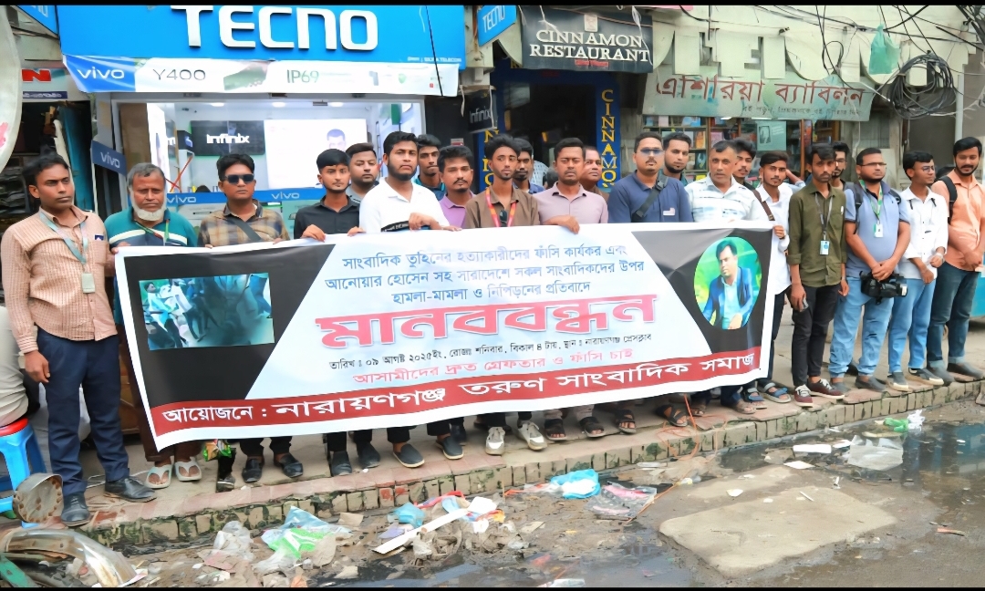 মানববন্ধনে বক্তারা বলেন, এটা কি নতুন বাংলাদেশের চিত্র হতে পারে। যেখানে সবচেয়ে বেশী হামলা, মামলা ও নিপিড়ন সহ হত্যার শিকার হচ্ছেন সাংবাদিকরা। গণ অভ্যূত্থানের পরবর্তি সময় সাংবাদিকরা কেন টার্গেট হচ্ছে? একজন সাংবাদিকের উপর আক্রমণ মানে গণতন্ত্রের কণ্ঠরোধের চেষ্টা করা। সাংবাদিক তুহিন হত্যার মত বর্বরোচিত ঘটনায় দোষীদের শুধু গ্রেপ্তার নয়, দ্রুত সর্বোচ্চ শাম্তি ফাঁসি কার্যকর করতে হবে। পাশাপাশি সাংবাদিক আনোয়ার হোসেনের ওপর হামলাকারীদেরও আইনের মুখোমুখি করতে হবে। সেই অপরাধীরা কেন এখনও ধরা ছোয়ার বাহিরে।