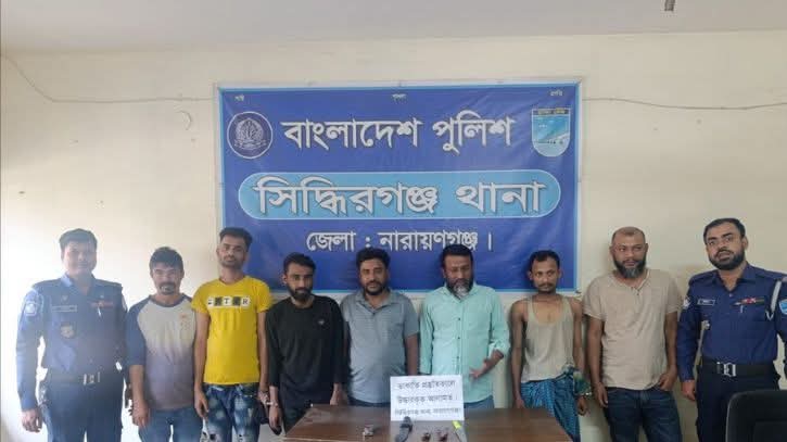 নারায়ণগঞ্জের সিদ্ধিরগঞ্জে পুলিশের অভিযানে ডাকাতির প্রস্তুতিকালে ৭ জনকে গ্রেপ্তার করা হয়েছে। এ সময় তাদের কাছ থেকে ডাকাতির কাজে ব্যবহৃত বিভিন্ন দেশিয় অস্ত্র উদ্ধার করা হয়। এছাড়া পৃথক অভিযানে আরও ৩ জনকে গ্রেপ্তার করা হয়েছে। সব মিলিয়ে ১০ জন আসামিকে আদালতে পাঠানো হয়েছে।