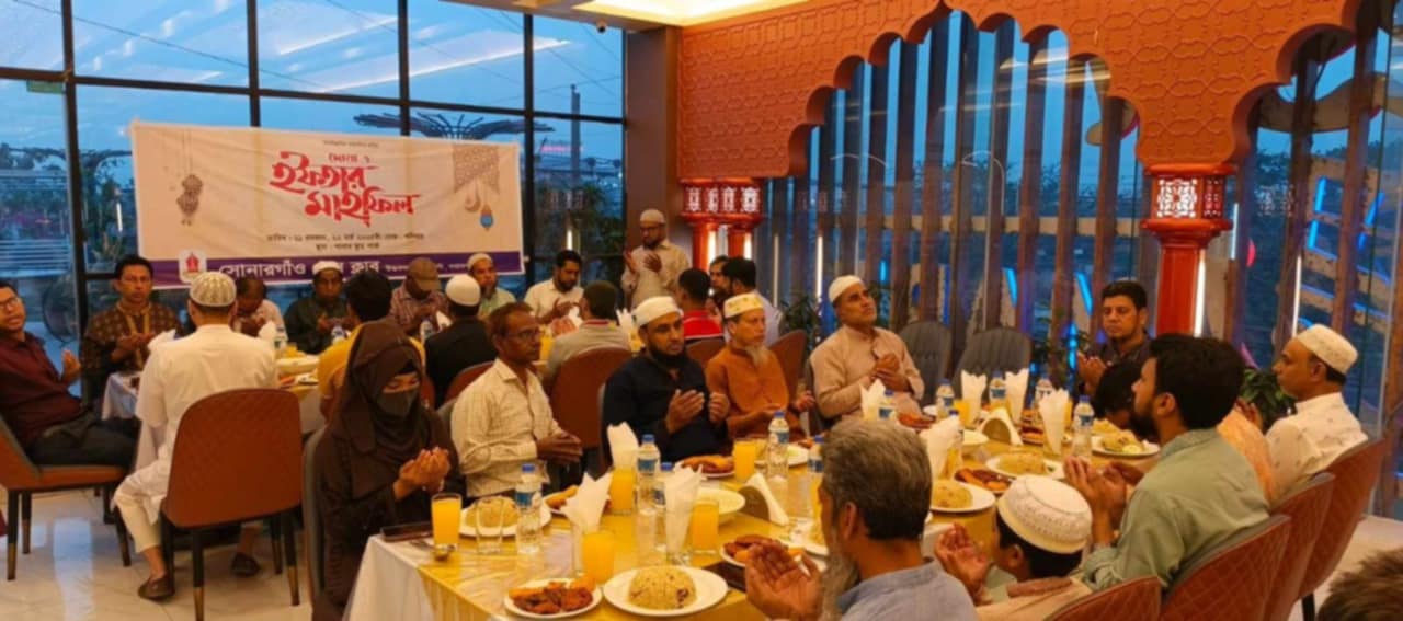 নারায়ণগঞ্জের সোনারগাঁও প্রেস ক্লাবের উদ্যোগে ইফতার ও দোয়া মাহফিল অনুষ্ঠিত হয়েছে।