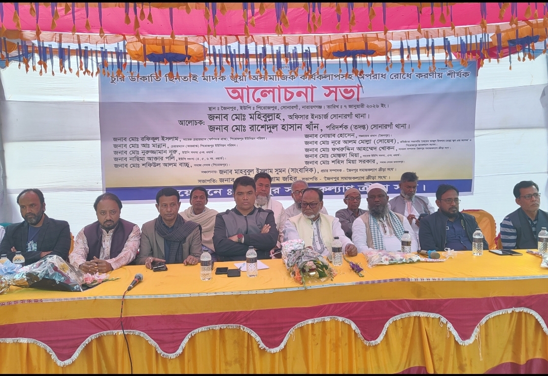 নারায়ণগঞ্জের সোনারগাঁয়ে চুরি ডাকাতি, চাঁদাবাজি ও ছিনতাই ঐক্যবদ্ধভাবে প্রতিরোধের ঘোষনা দিয়েছেন জৈনপুর সমাজকল্যাণ ক্রীড়া সংঘ।
