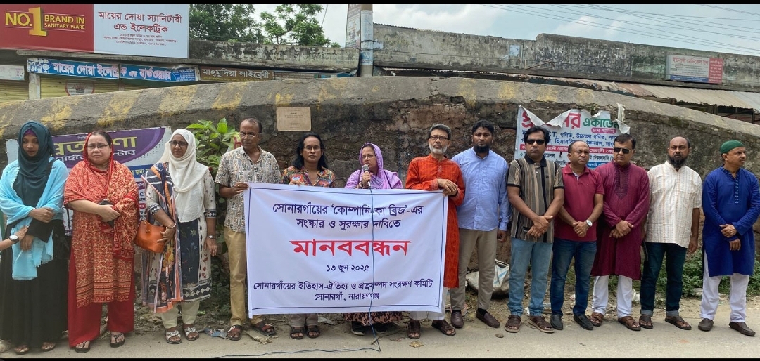 নারায়ণগঞ্জের সোনারগাঁয়ে প্রাচীন স্থাপত্যকীর্তি কোম্পানিকা সেতু রক্ষার দাবিতে মানববন্ধন কর্মসূচি পালিত হয়েছে। শুক্রবার সকালে ‘সোনারগাঁয়ের ইতিহাস-ঐতিহ্য ও প্রত্নসম্পদ সংরক্ষণ কমিটি’র উদ্যোগে এ কর্মসূচি পালন করা হয়েছে।
