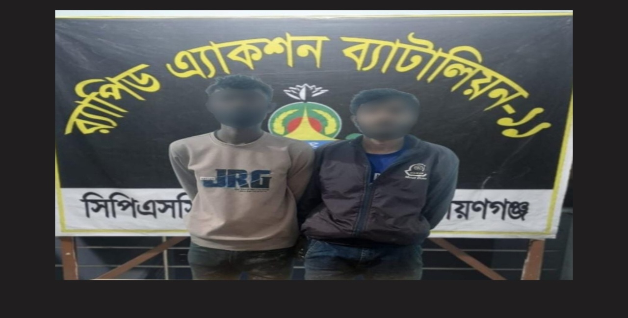 এ সময় যৌথ বাহিনীর উপস্থিতি টের পেয়ে পালানোর চেষ্টাকালে গ্রেপ্তার করা হয়—রোহান (২৫), সবুজ (২৮)।