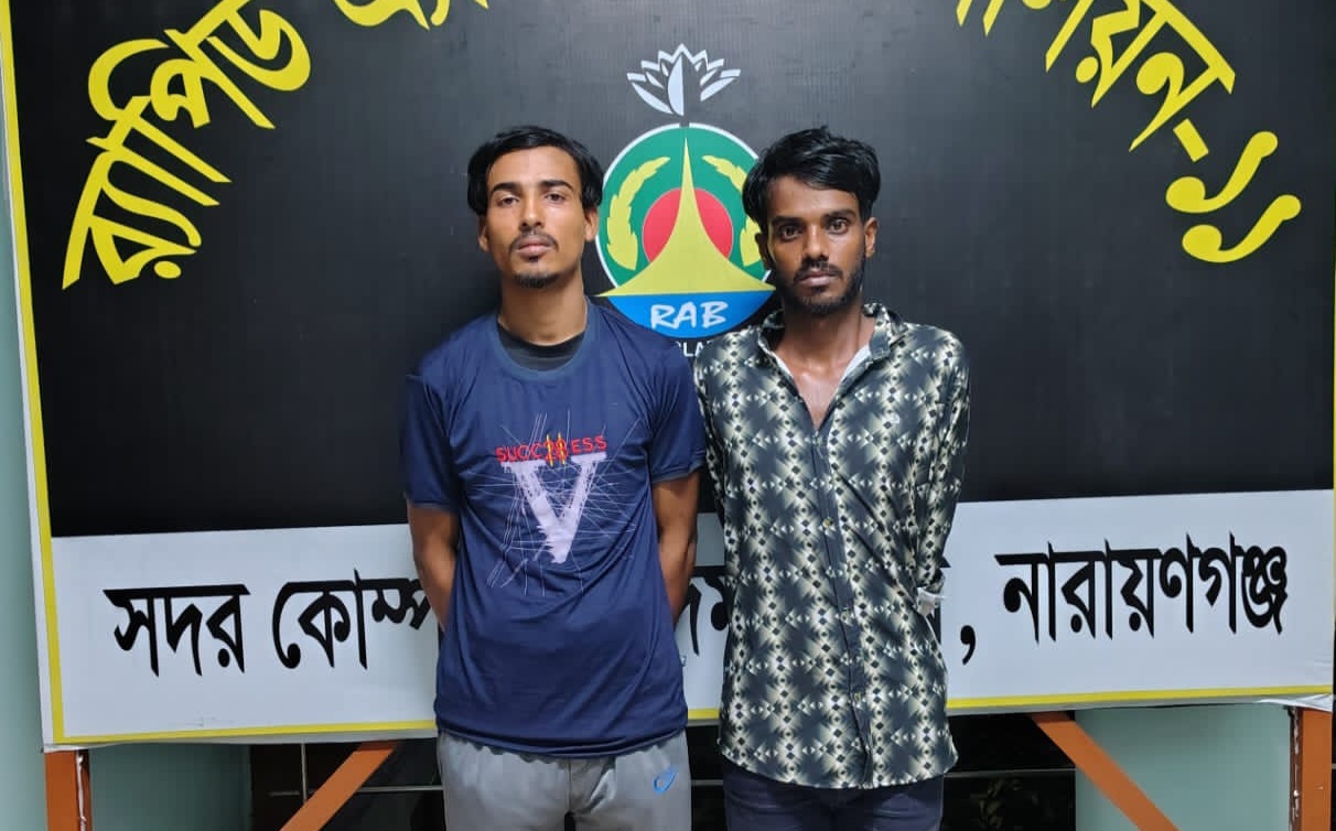 গ্রেফতারকৃত আসামিরা হলো, রুপগঞ্জ উপজেলার দিঘি বরাবো এলাকার ইউনূস প্রধানের ছেলে ইসমাইল প্রধান (২৪)। একই উপজেলার মোঘড়াকুর গ্রামের মনির হোসেনের ছেলে ওসমান গনি (২৩)।