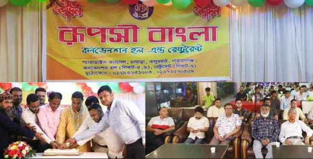 নারায়ণগঞ্জ শহরের চাষাড়া বালুরমাঠ এলাকার প্যারাডাইস ক্যাসেল বিল্ডিং এর ৫,৬,৭ তিনটি ফ্লোর নিয়ে মনোরম পরিবেশে স্বাস্থ্য সম্মত খাবারের নিশ্চিয়তায় উদ্বোধন করা হলো রুপসী বাংলা কনভেনশন হল এন্ড রেস্টুরেন্ট। ২৮শে আগষ্ট বুধবার সন্ধ্যায় রেস্টুরেন্টটির শুভ উদ্বোধন করা হয়। উদ্বোধনকালে উপস্থিত ছিলেন রেষ্টুরেন্টের মালিকপক্ষ সহ সমাজের বিশিষ্ট ব্যাক্তিবর্গ। উপস্থিত ছিলেন মহানগর বিএনপির আহবায়ক এডভোকেট শাখওয়াত হোসেন খান, ১৩ নং ওয়ার্ড কাউন্সিলর মাকসুদ আলম খন্দকার খোরশেদ,১৩ নং ওয়ার্ড পঞ্চায়েত কমিটির প্রধান নাসির উদ্দীন মন্টু , হিন্দু বৌদ্ধ খ্রিস্টান ঐক্য ফ্রন্টের কেন্দ্রীয় ভাইস চেয়ারম্যান জয় কে রায় চৌধুরী বাপ্পী, হিন্দু বৌদ্ধ খ্রিস্টান ঐক্য পরিষদ নারায়ণগঞ্জ মহানগর এর সভাপতি লিটন পাল, বিশিষ্ট হোসিয়ারী ব্যবসায়িক বাবু কৃষ্ণ সাহা সহ নারায়ণগঞ্জ এর বিভিন্ন মহলের ব্যবসায়িক বৃন্দ,শিক্ষকবৃন্দ,আইনজীবি,সাংবাদিকবৃন্দ সহ সমাজের বিশিষ্ট ব্যক্তিবর্গ, বিভিন্ন পেশাজীবির ব্যক্তিবর্গ উপস্থিত ছিলেন। এ সময় উপস্থিত বিশিষ্ট ব্যক্তিবর্গের মধ্যে সকলেই রুপসী বাংলা কনভেনশন হল এন্ড রেষ্টুরেন্ট এর সাফল্য কামনা করে বক্তব্য রেখেছেন। কর্নদারদের মধ্যে এড সাঈদুর রহমান বলেছেন,উপস্থিত সবাই সহ সকলে রুপসী বাংলার পরিবার।রেষ্টুরেন্ট এর সাথে থাকার জন্য অনুরোধ জানিয়েছেন। অন্য এক কর্নধার অভিজিত সাহা এ সময় বলেন, রুপসী বাংলা কনভেনশন হল এন্ড রেষ্টুরেন্ট সাস্থ্য সম্মত খাবারের নিশ্চয়তা দিতে বদ্ধ পরিকর।নারায়ণগঞ্জ বাসীকে সর্বোচ্চ সেবা দিয়ে তাদের আয়োজন কে সাফল্যমন্ডিত করে তুলবে। রুপসী বাংলা কনভেনশন হল এন্ড রেস্টুরেন্ট উদ্বোধনী অনুষ্ঠানে বিভিন্ন রকমের বাফেট খবার পরিবেশনের মাধ্যমে অতিথিদের আপ্যায়ন ব্যবস্থা করা হয়।