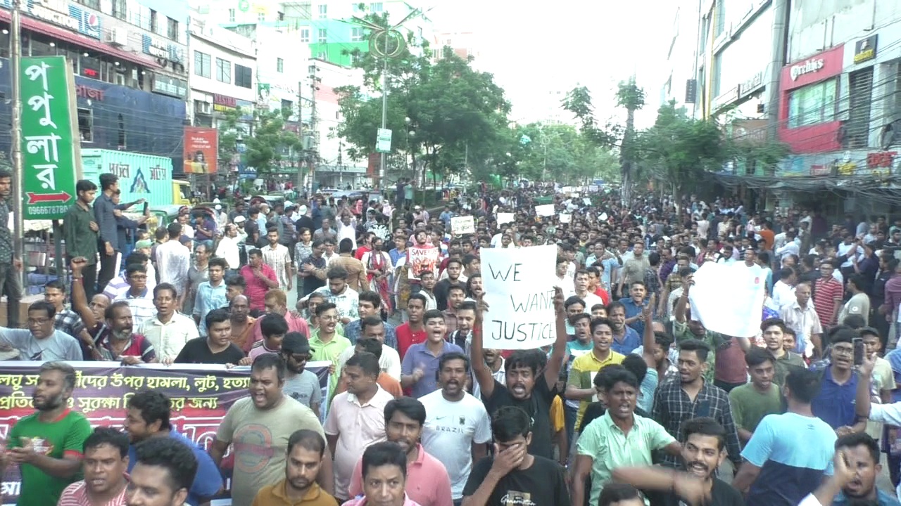 হামলার প্রতিবাদে নারায়ণগঞ্জে সনাতন ধর্মাবলম্বীদের বিক্ষোভ