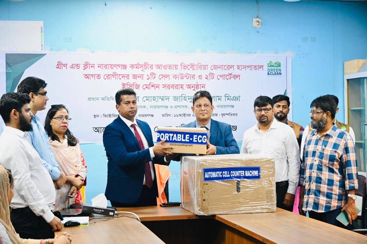 নারায়ণগঞ্জ জেলা প্রশাসক ও জেলা পরিষদ প্রশাসক মোহাম্মদ জাহিদুল ইসলাম মিঞা গ্রিন অ্যান্ড ক্লীন নারায়ণগঞ্জ কর্মসূচির আওতায় জেলা পরিষদের উদ্যোগে ভিক্টোরিয়া জেনারেল হাসপাতালে আগত করেন। বৃহস্পতিবার (১৬ অক্টোবর) দুপুরে ভিক্টোরিয়া জেনারেল হাসপাতাল পরিদর্শন করেন তিনি।