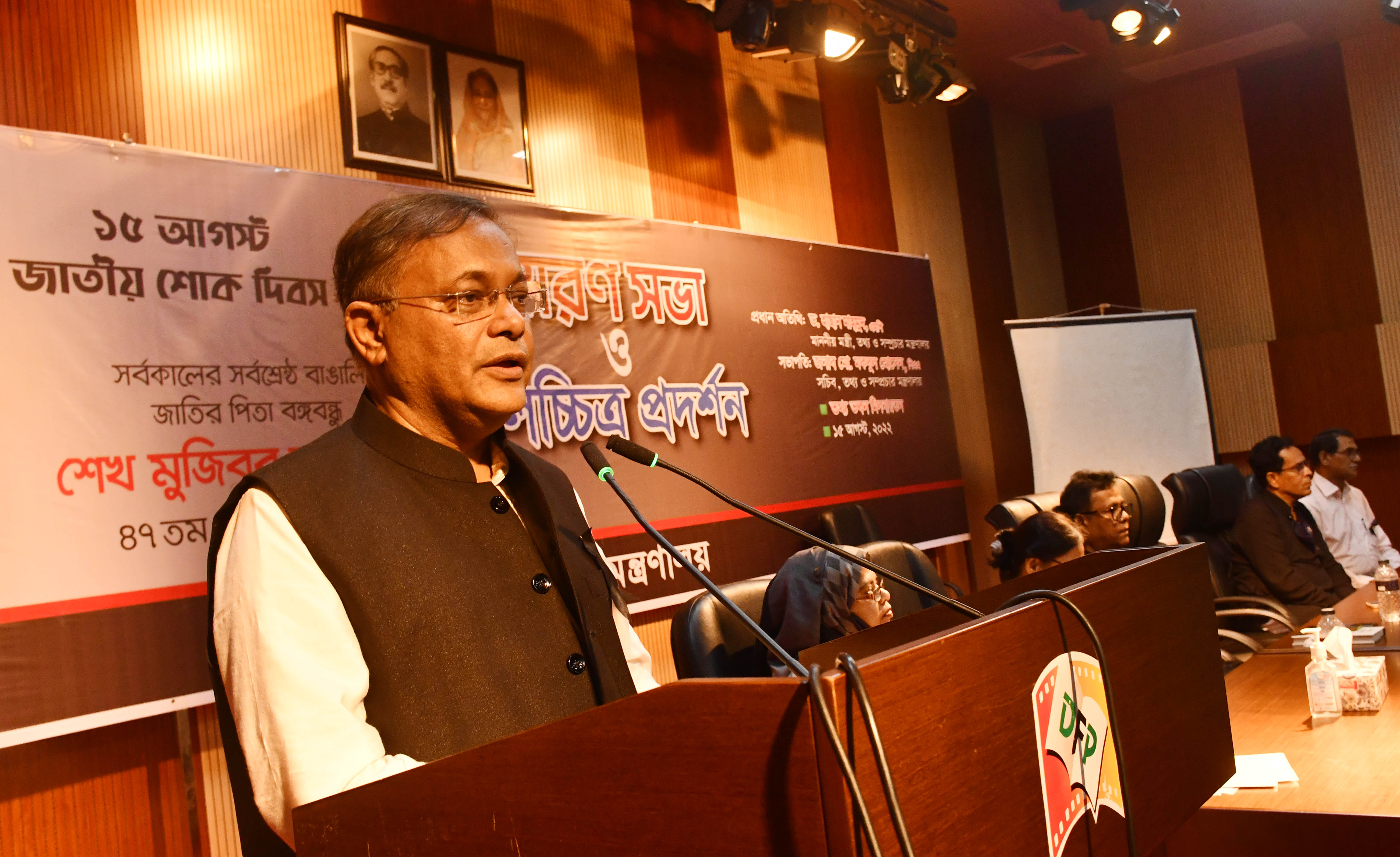 জাতীয় শোক দিবসে আজ তথ্য ও সম্প্রচার মন্ত্রণালয় আয়োজিত বিশেষ স্মরণ সভা ও চিরঞ্জীব বঙ্গবন্ধু প্রামাণ্যচিত্র প্রদর্শনীতে তিনি একথা বলেন। সোমবার বিকেলে রাজধানীর কাকরাইলে তথ্য ভবন মিলনায়তনে এইস্মরণ সভা অনুষ্ঠিত হয়।