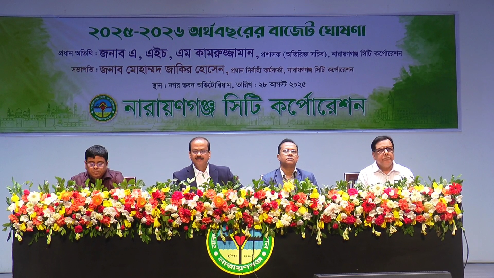 নারায়ণগঞ্জ সিটি কর্পোরেশন ২০২৫-২০২৬ অর্থ বছরের বাজেট ঘোষণা করেছে ৭৭৫ কোটি লাখ ৩৩ ৭৮হাজার ১৫৮ টাকা। দুপুরে নাসিক মিলনায়তনে প্রশাসক এ,এইচ,এম কামরুজ্জামান বাজেট ঘোষণা করেন। এতে উপস্থিত ছিলেন, বিশিষ্ট জন, নাসিক কর্মকর্তা ও গণমাধ্যমকর্মীরা ।